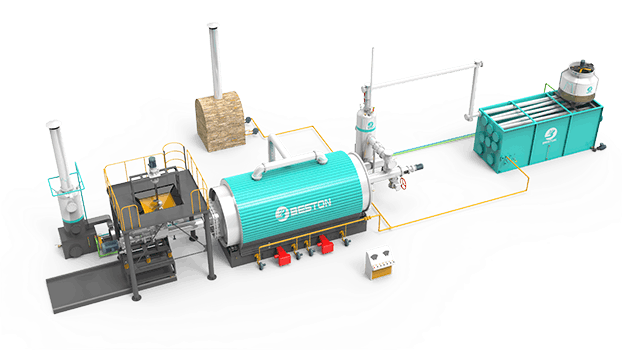 由引风机、烟道冷凝器、排烧室、汽包和渣油罐、三合一冷凝器、出料系统、驱动系统、裂解主炉、液压进料机构、除尘塔等几部分组成。
