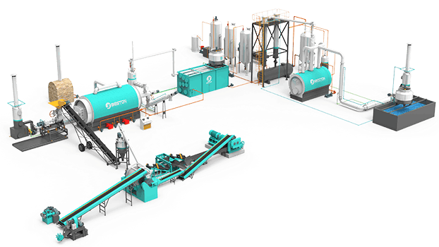 由反应釜、驱动系统、取样器、螺旋除渣器、汽包系统、静电除尘器、水冷出渣机、油气冷凝系统、水冷炭黑储存罐、螺旋进料机、称重机、料仓等几部分组成 ;